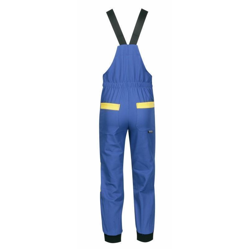 Lastnosti: Naramnice so prilagodljive in elastične, na ledvičnem delu je všita elastika, hlače imajo dva spodnja žepa spredaj in dva zadaj, prsni žep pa je potiskan z barvastim preslikačem. Ledveni del je pokrit, na nogah so našiti patenti za bojši oprijem ter prilagodljivost na velikost hitro rastočega malčka. Elastika omogoča, da so malčku hlače prav dalj časa, saj preprečuje, da bi malček hodil po hlačnicah, četudi so mu hlače malo prevelike.