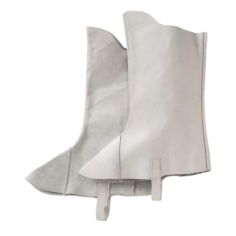 Gamaše iz govejega cepljenega usnja debeline 1 mm, višine 40 cm, z ježkom. Primerne za zaščito kože operaterja, prekritega z oblačili, pred majhnimi kapljicami staljene kovine pri varjenju in rezanju.